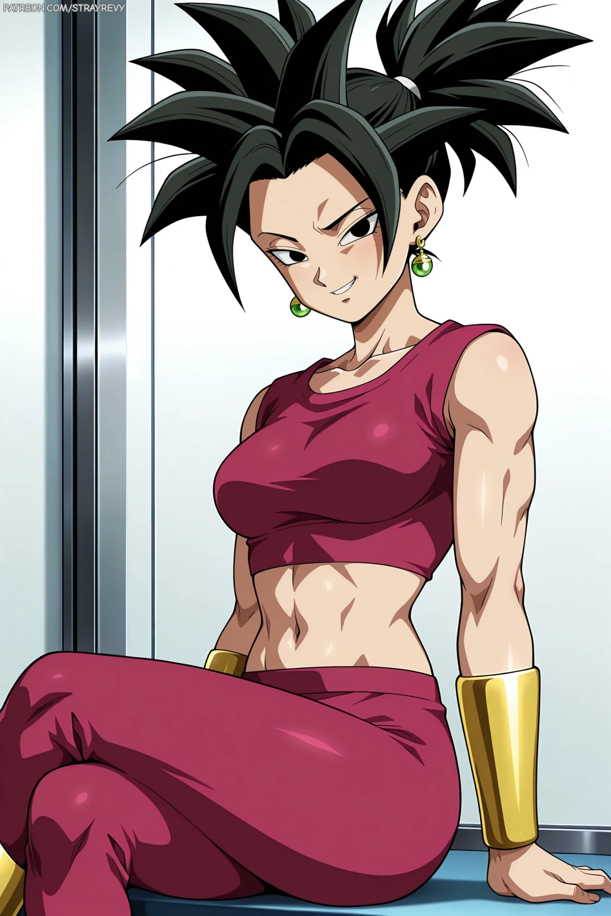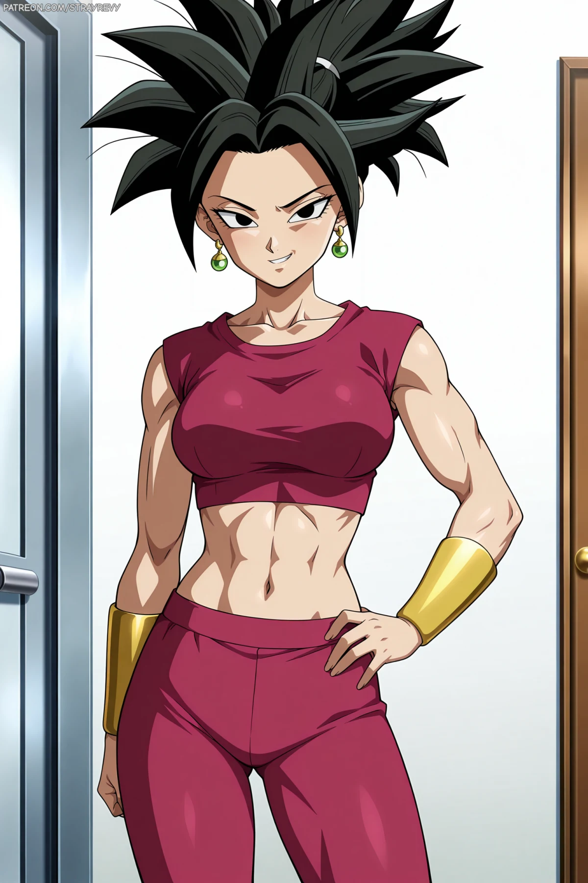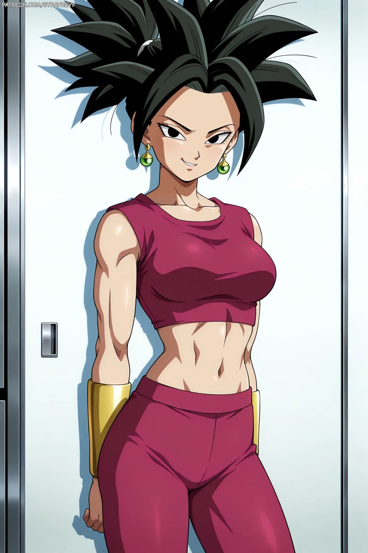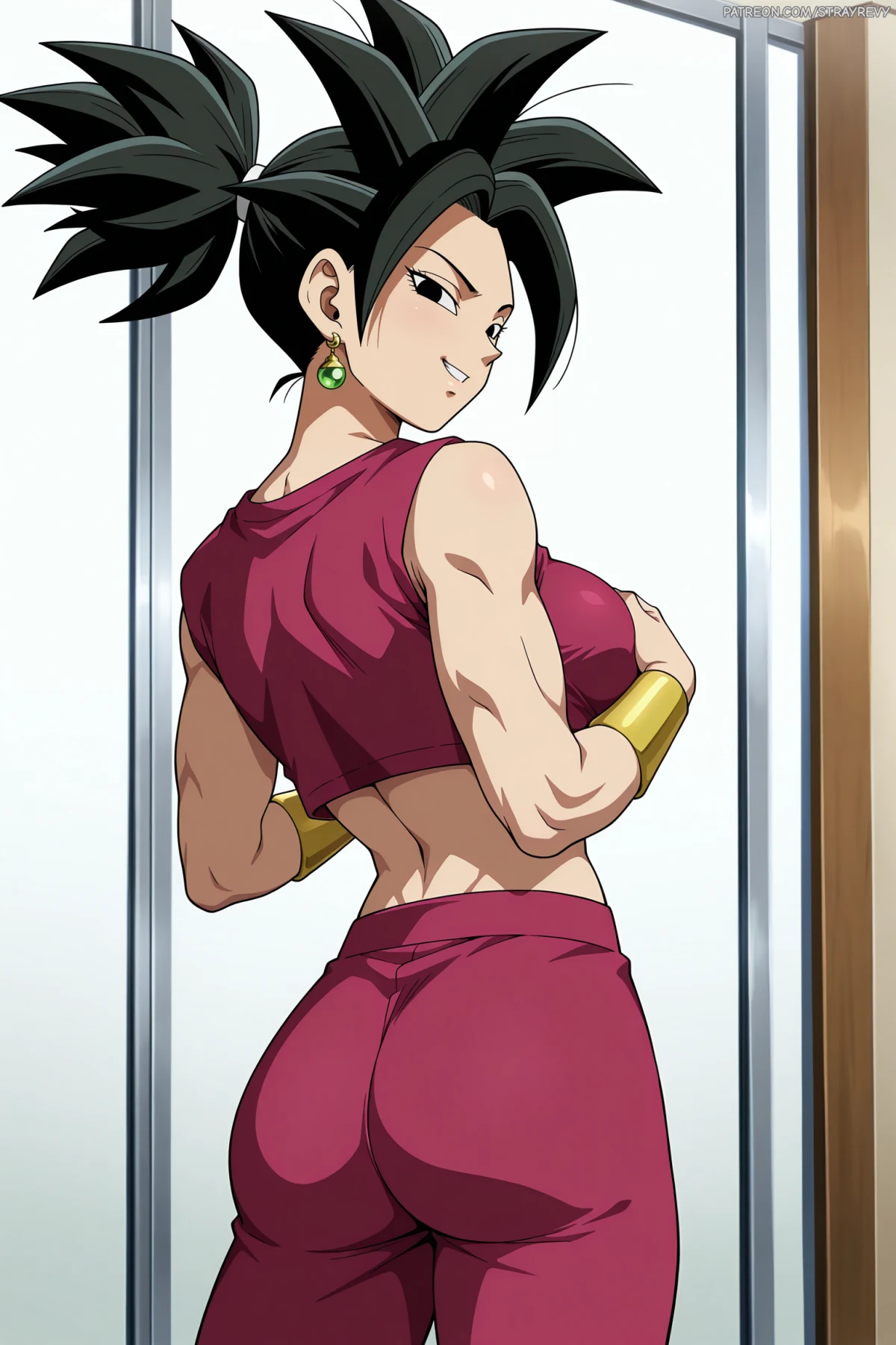 Kept her physique leaner/toned for the Base Form, saving the heavy muscle definition for her Super Saiyan version.