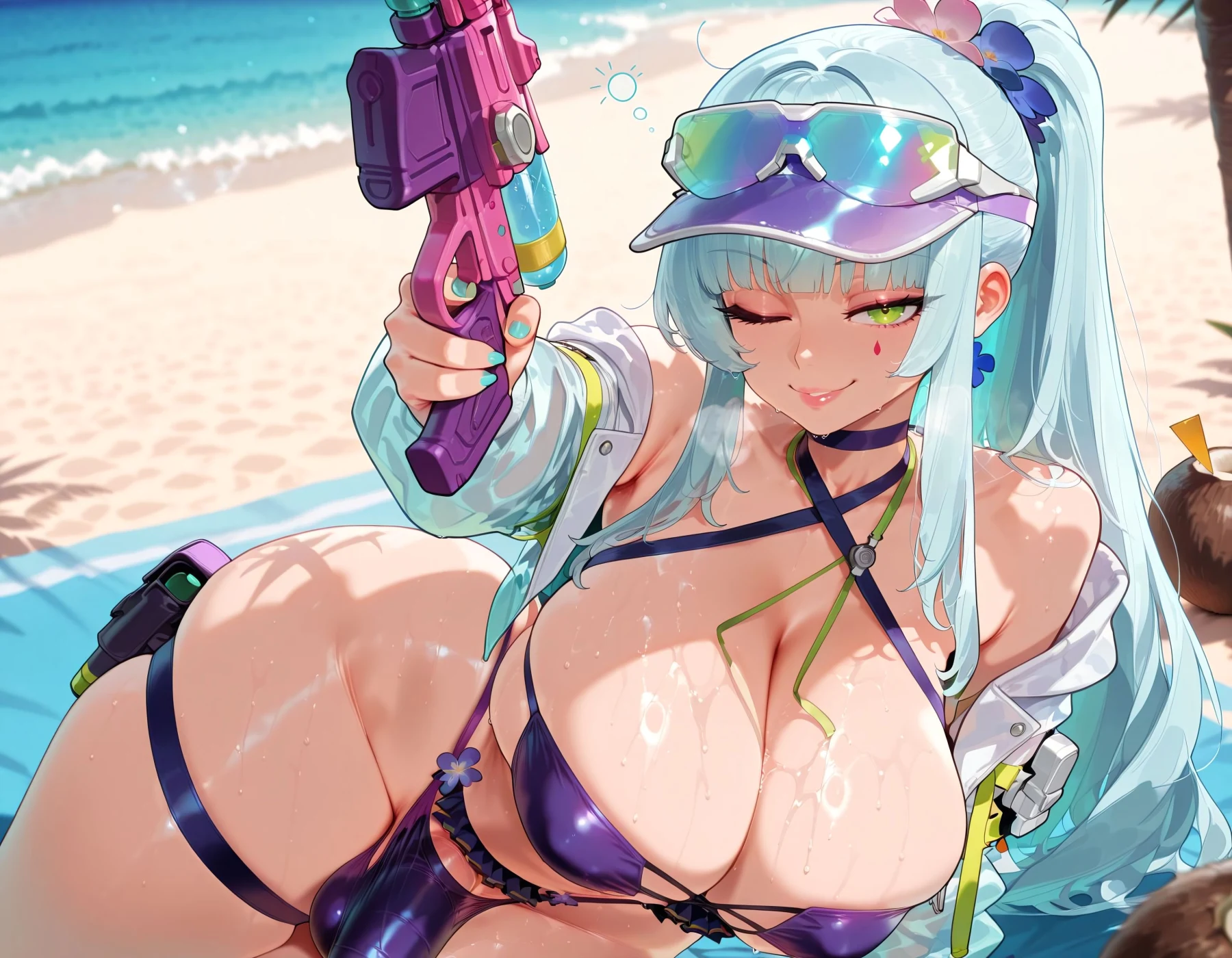 posing is klukaiβs favorite thingβ¦ bikini pulling at her chest, sand on her skin, and the waves brushing against her thighs βοΈ she knows how to tease in the sun.