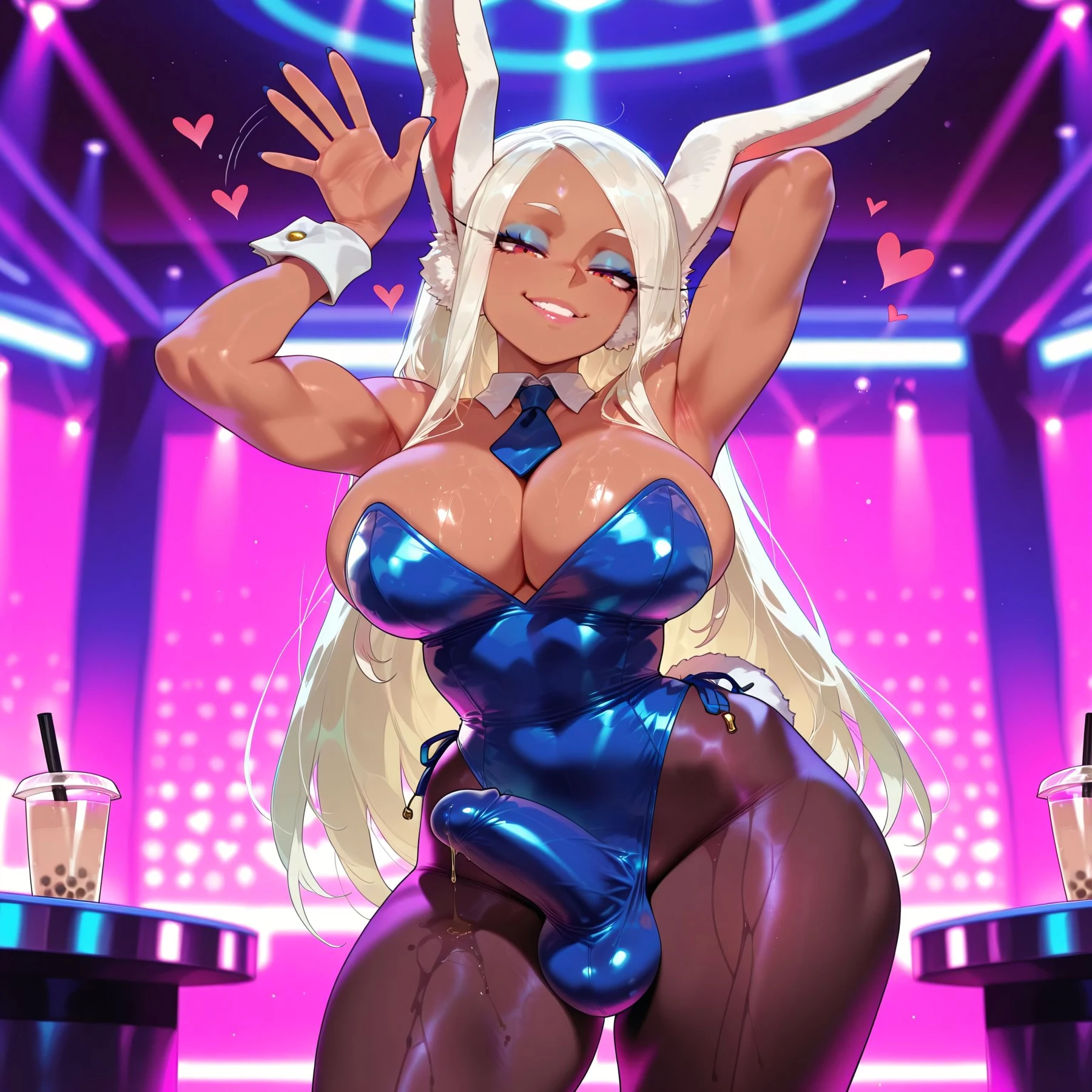 posing in the club, her muscles flexing, bunnysuit cut perfectly to show off those insane curves π₯π