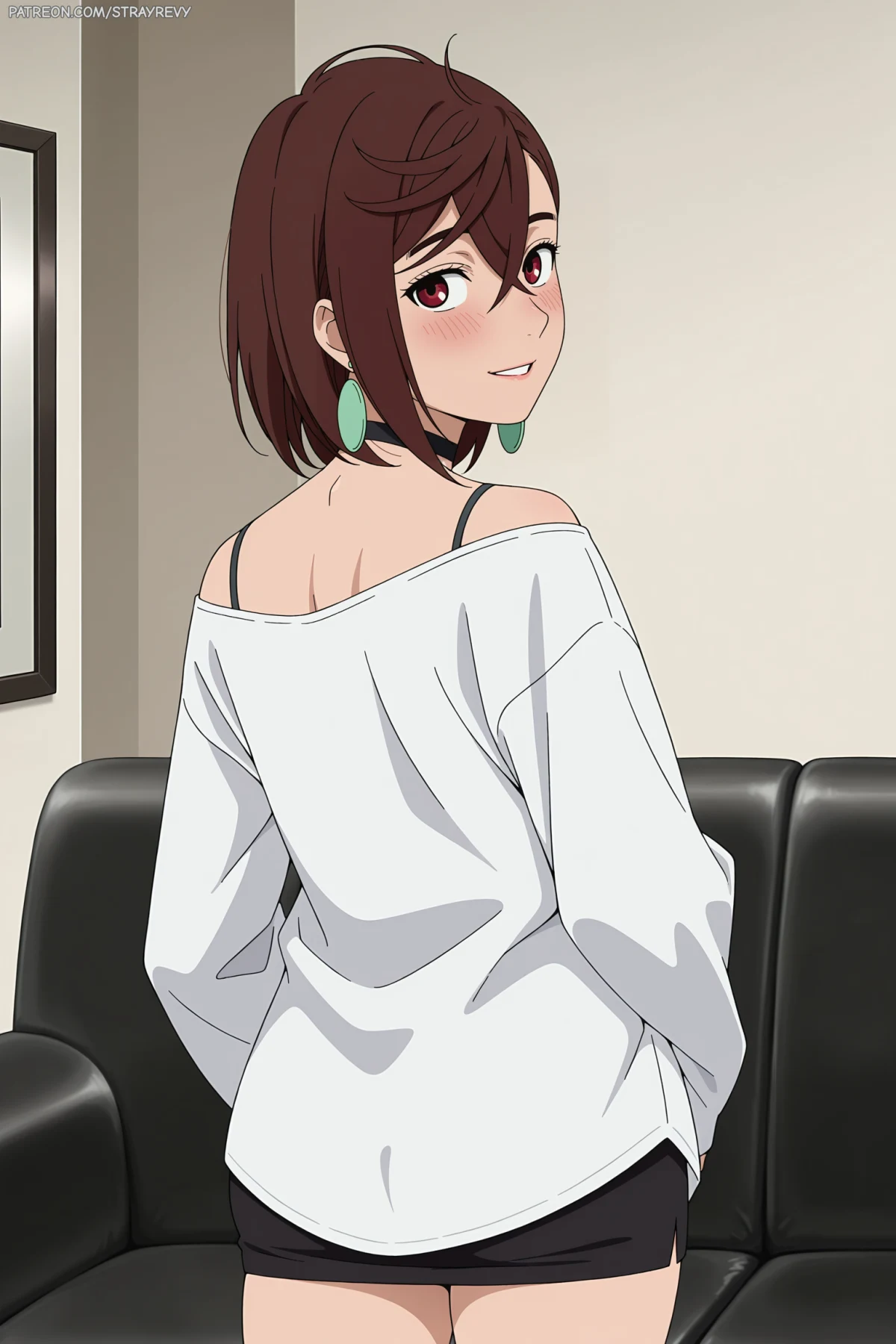 That casual 'oversized shirt' look suits her perfectly. Sometimes simple outfits make for the best sets.