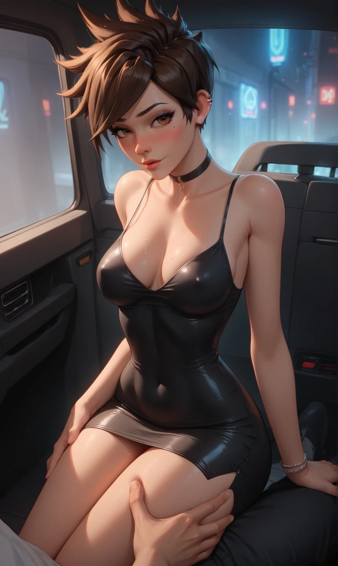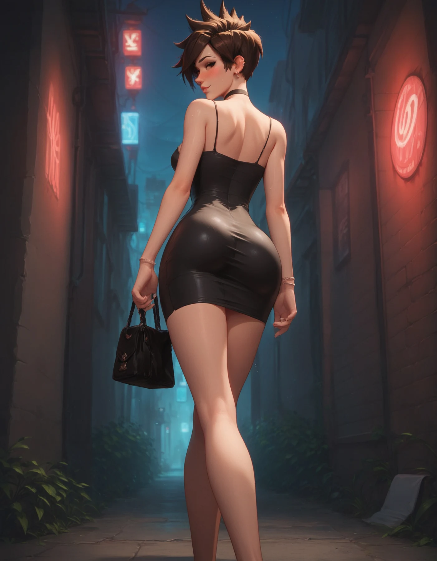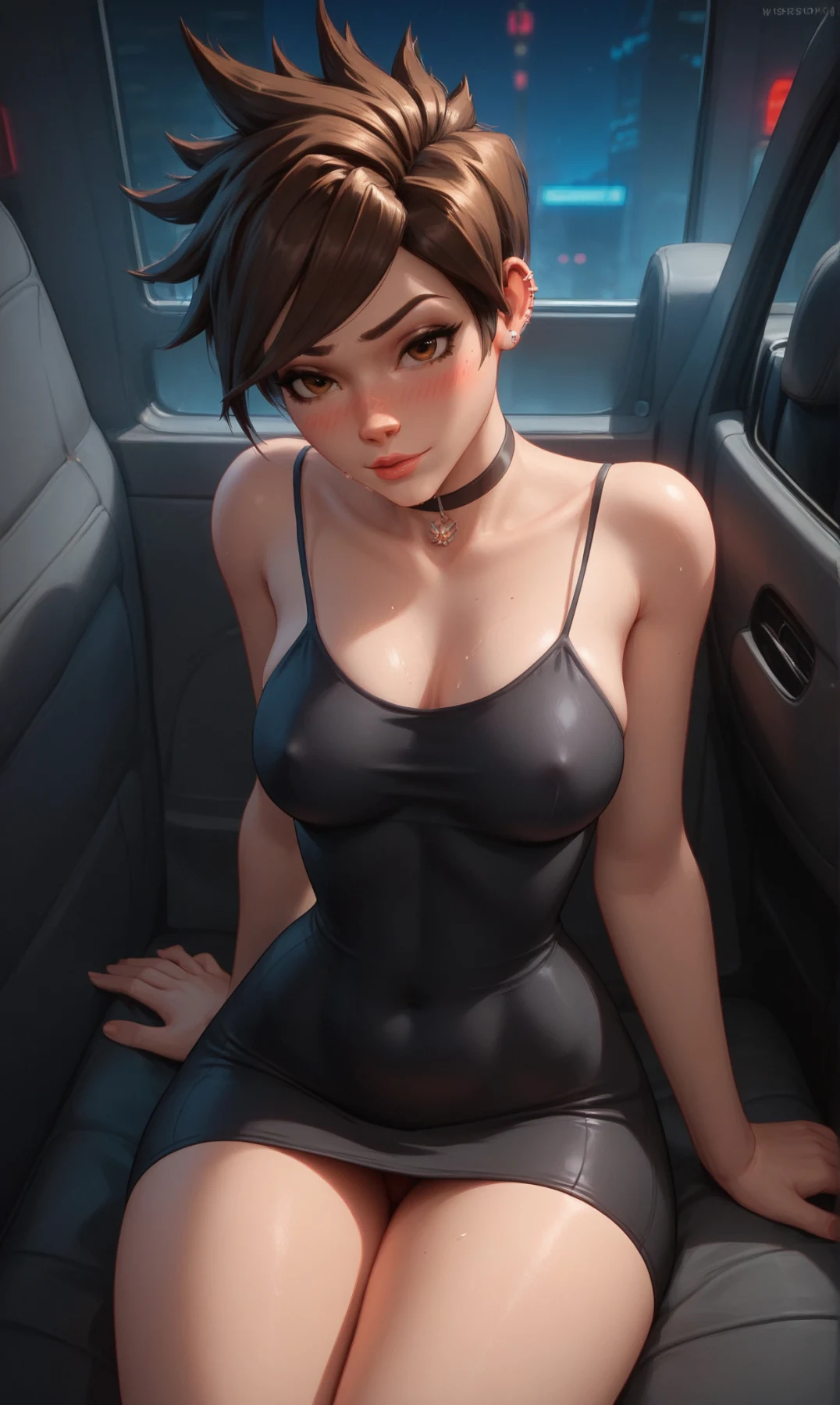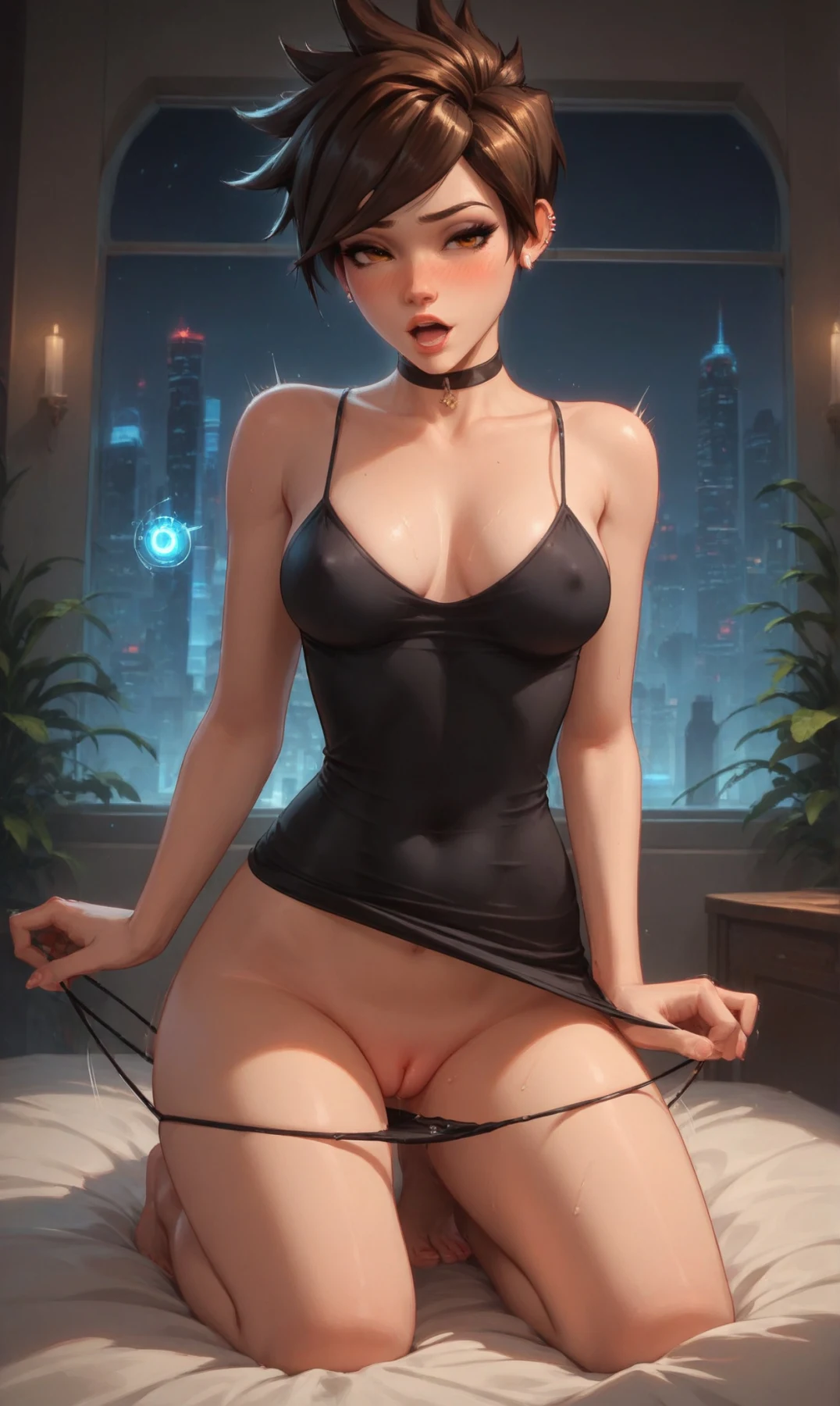 Tracer wearing a tight dress and naked(All characters depicted are over 23 years old, and the images do not represent the canon of these characters. This includes scenarios that may suggest otherwise. The character's short stature is a personal chara...