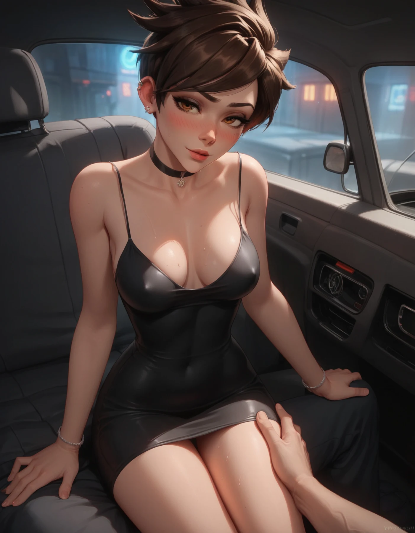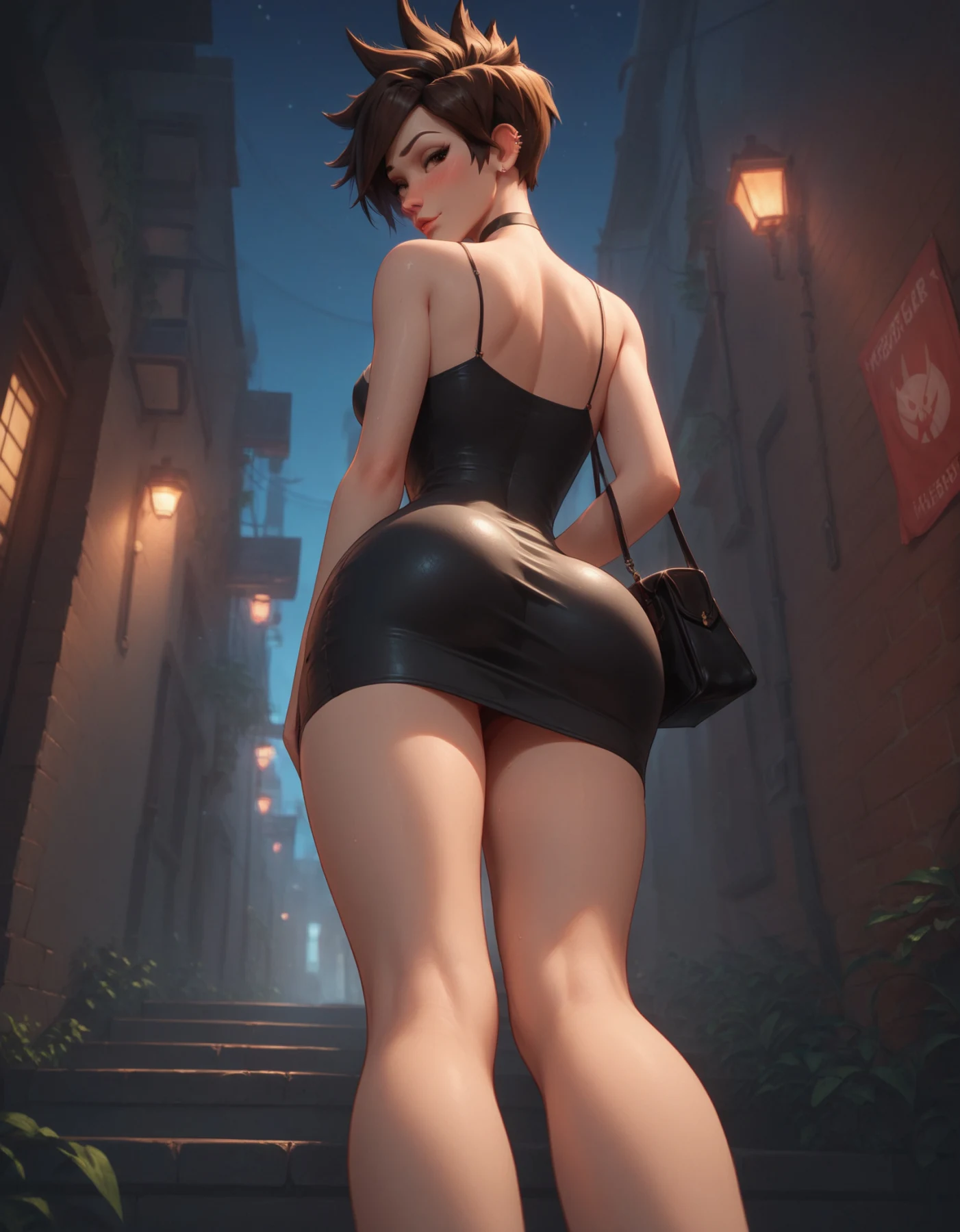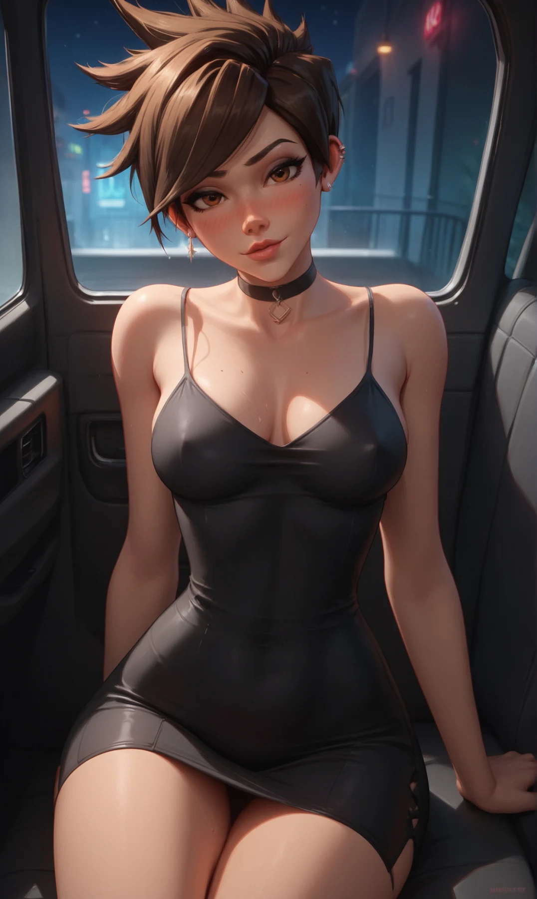 Tracer wearing a tight dress and naked(All characters depicted are over 23 years old, and the images do not represent the canon of these characters. This includes scenarios that may suggest otherwise. The character's short stature is a personal chara...