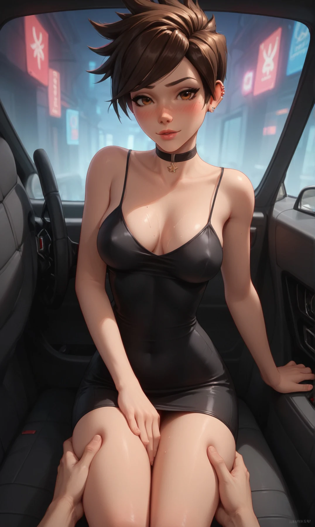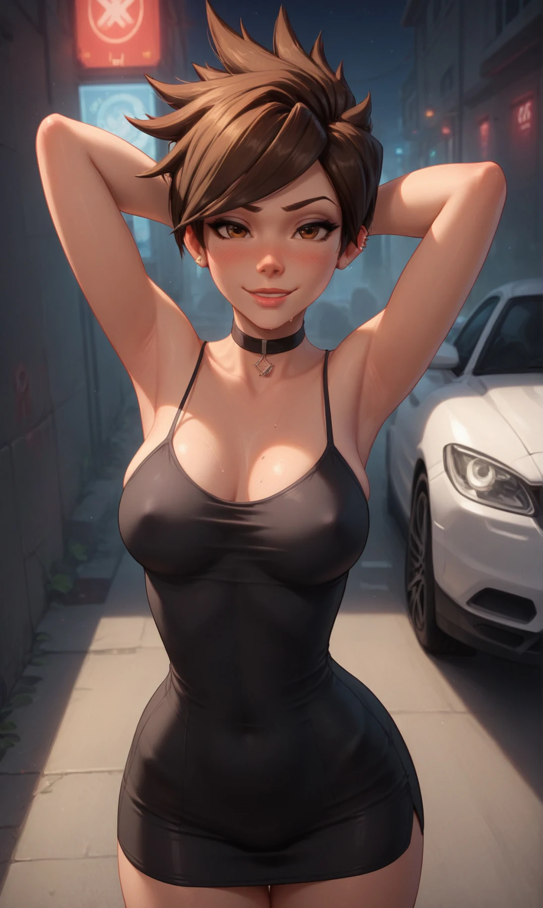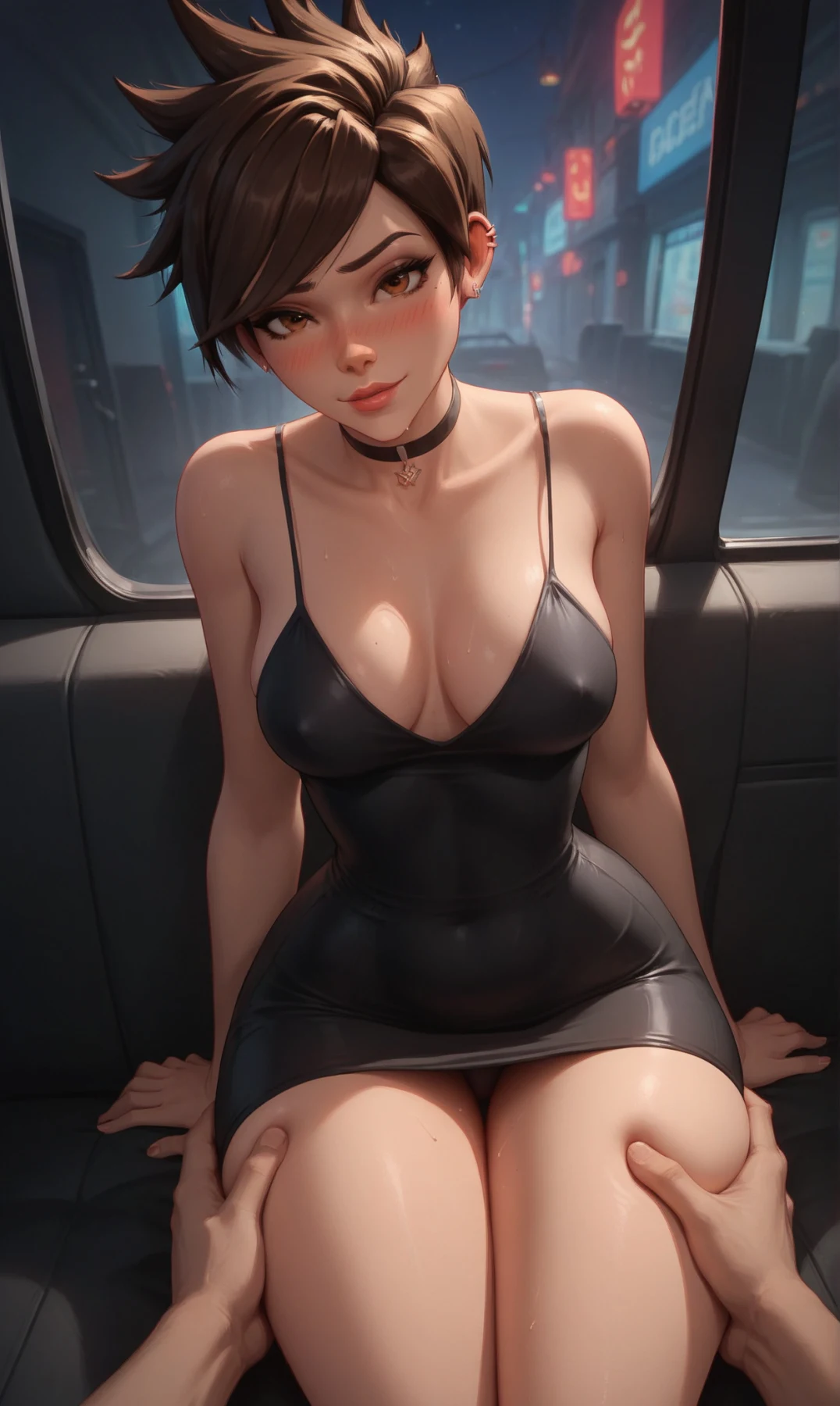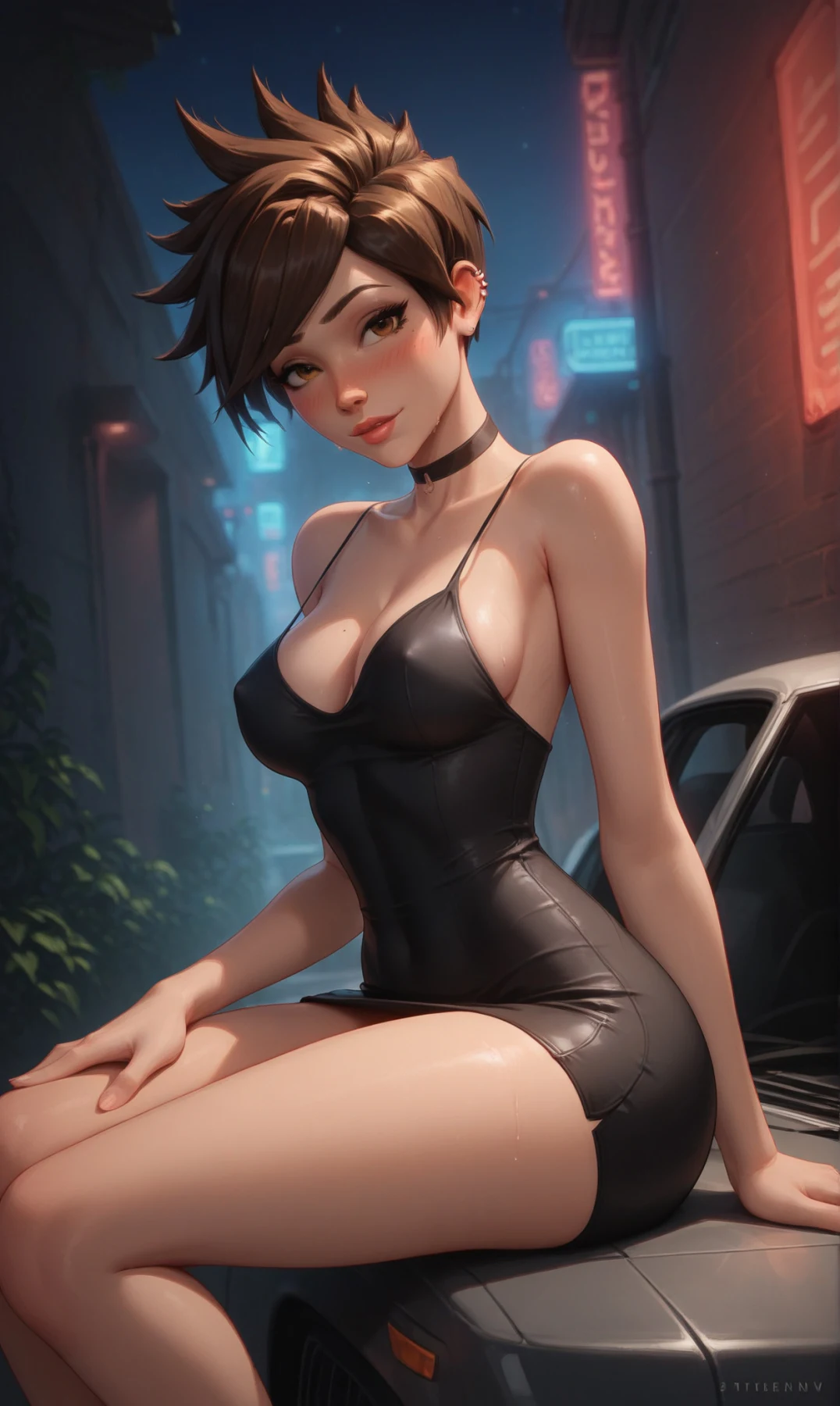 Tracer wearing a tight dress and naked(All characters depicted are over 23 years old, and the images do not represent the canon of these characters. This includes scenarios that may suggest otherwise. The character's short stature is a personal chara...