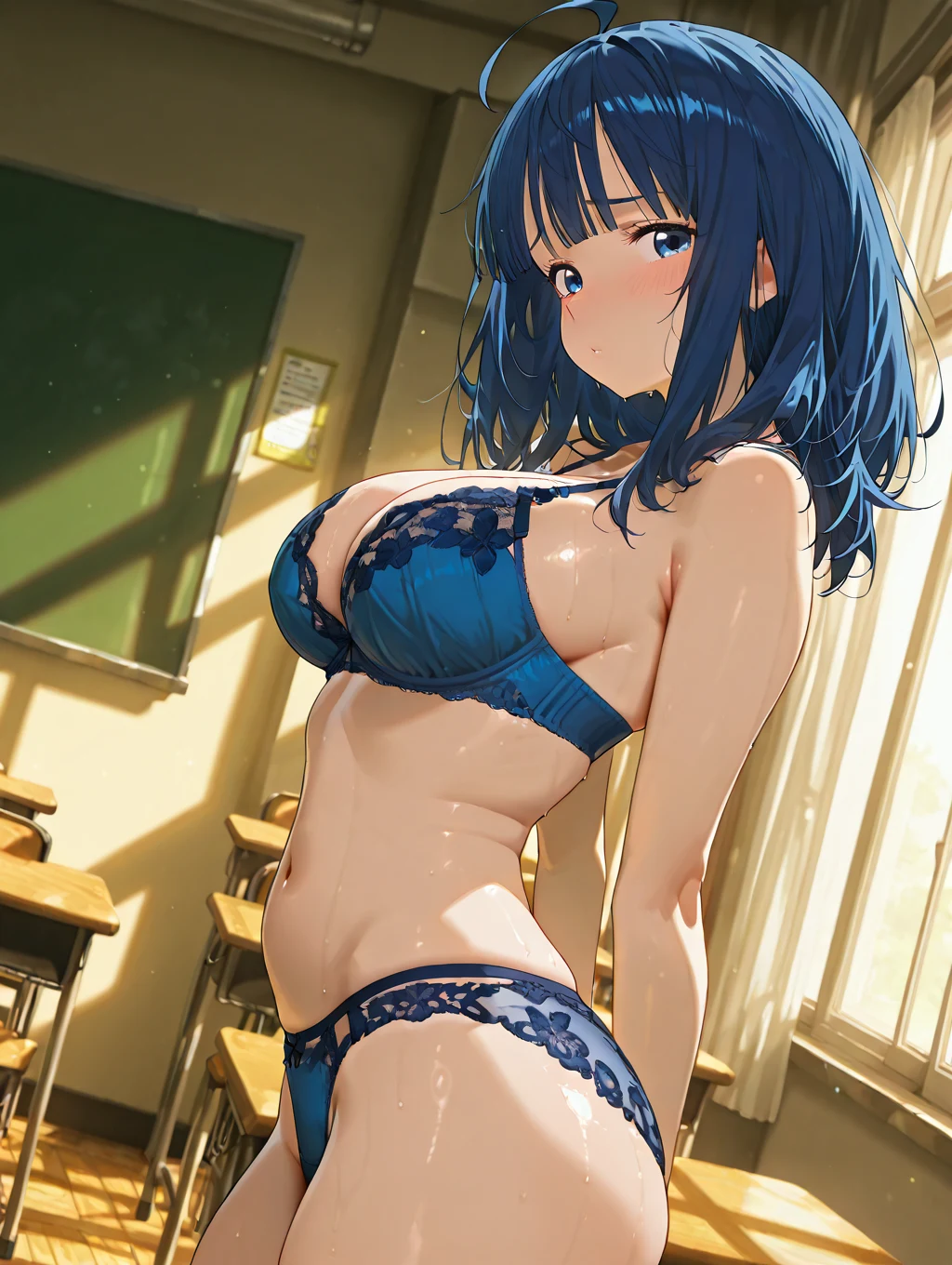 The client requested a classroom background and a shy expression for this piece.