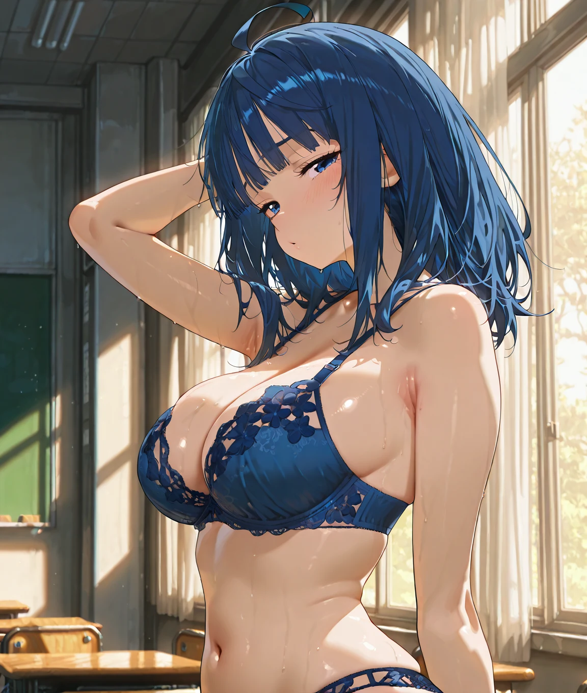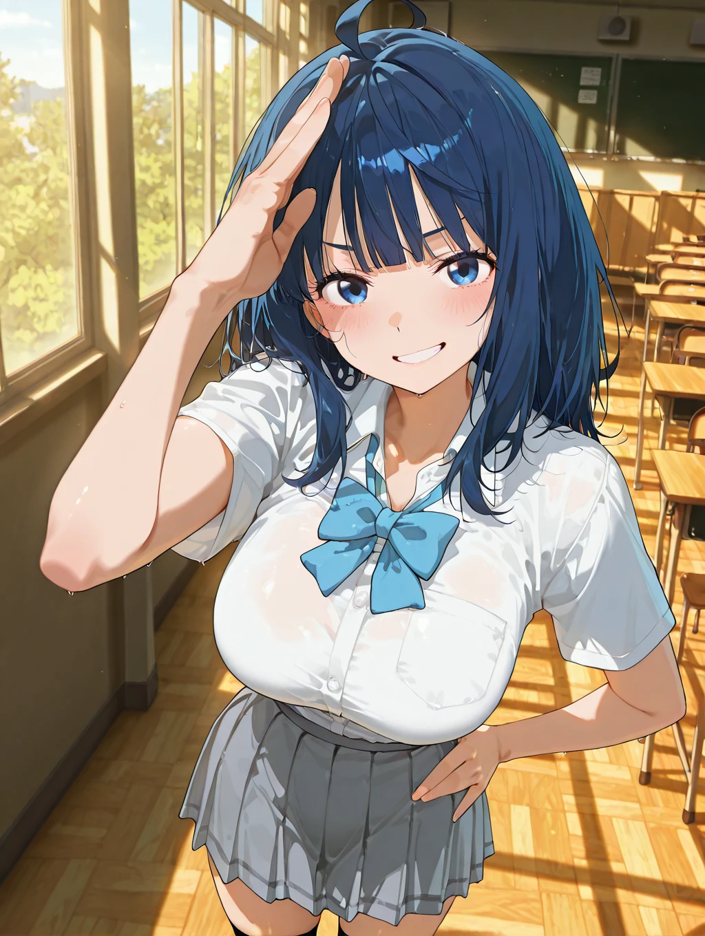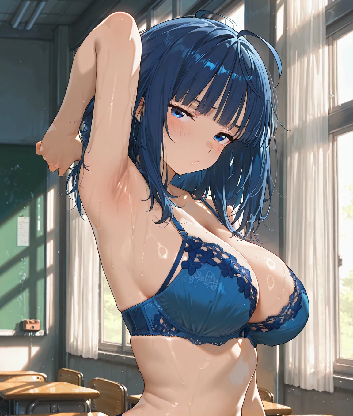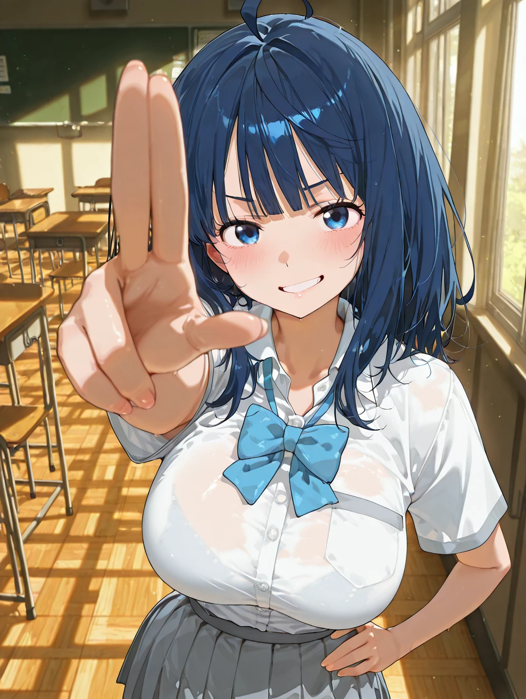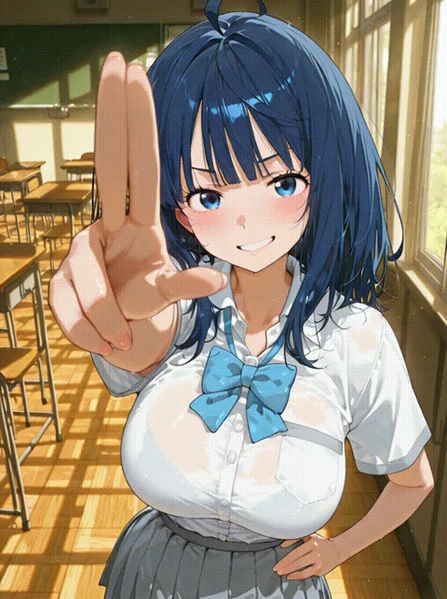 依頼者の希望で、背景は教室、表情は恥ずかしがっている感じにしています。